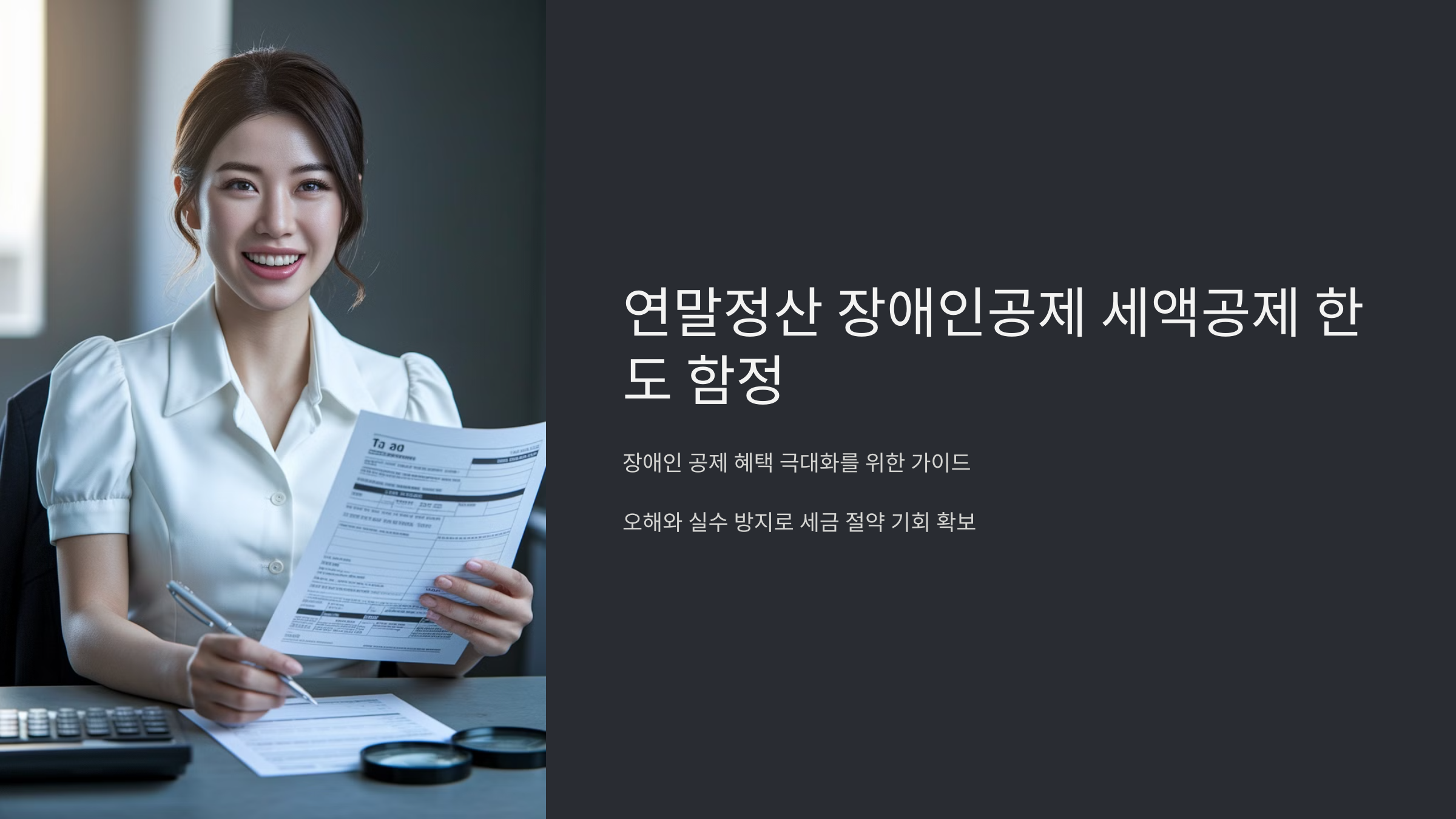'연말정산 장애인공제 세액공제 한도 놓치기 쉬운 함정'은 많은 근로자들이 연말정산 시 장애인 공제 혜택을 제대로 누리지 못하게 만드는 주요 원인들을 다룹니다. 본 포스팅에서는 연말정산 장애인공제 시 흔히 발생하는 오류와 놓치기 쉬운 함정들을 꼼꼼히 분석하고, 이를 피하여 세금 혜택을 최대한으로 받을 수 있는 실질적인 해결 방안을 제시합니다. 장애인 공제 관련 세법 규정을 정확히 이해하고, 사전에 철저히 준비하여 세금 절약의 기회를 놓치지 않도록 돕는 것이 목표입니다.